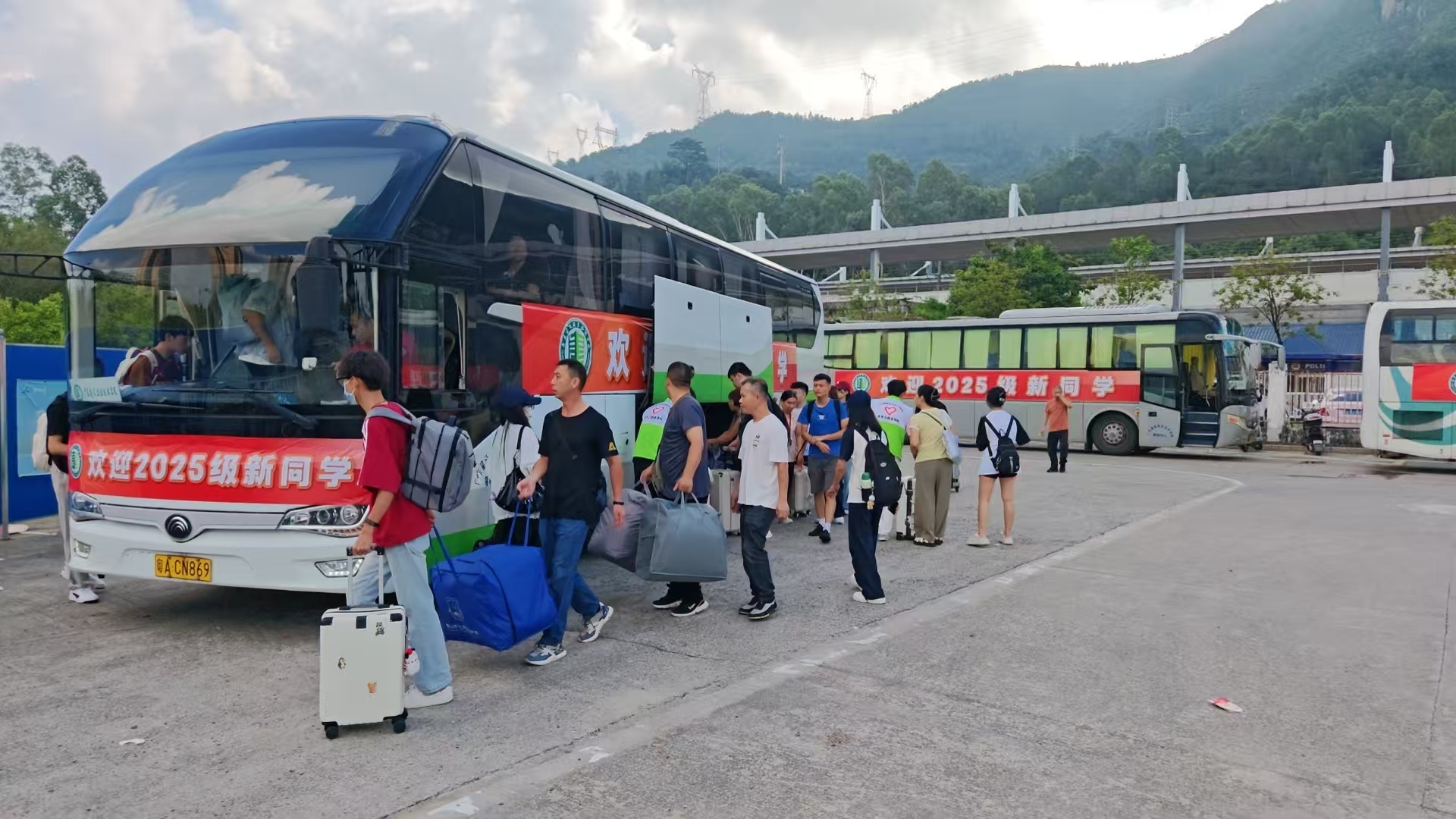清远校区距高铁站有点远,志愿者们每天清晨集结完毕,乘坐大巴八点前到达高铁站。“看到新生拎着沉甸甸的行李箱,就想起去年自己报到时也是师兄师姐帮忙下来到学校的。” 志愿者邱同学擦着额头的汗水说,为了做好服务,学院提前开展培训,从路线指引到应急处理,每一项流程都烂熟于心。学生志愿者日均步数超过 2 万步,他们的身影穿梭在校园各个角落,成为新生眼中 “可靠的依靠”。