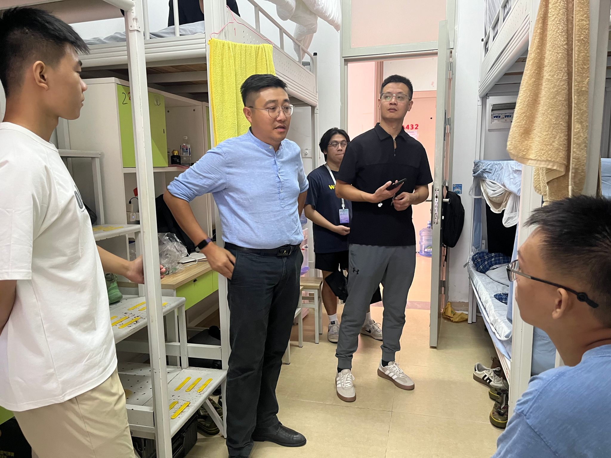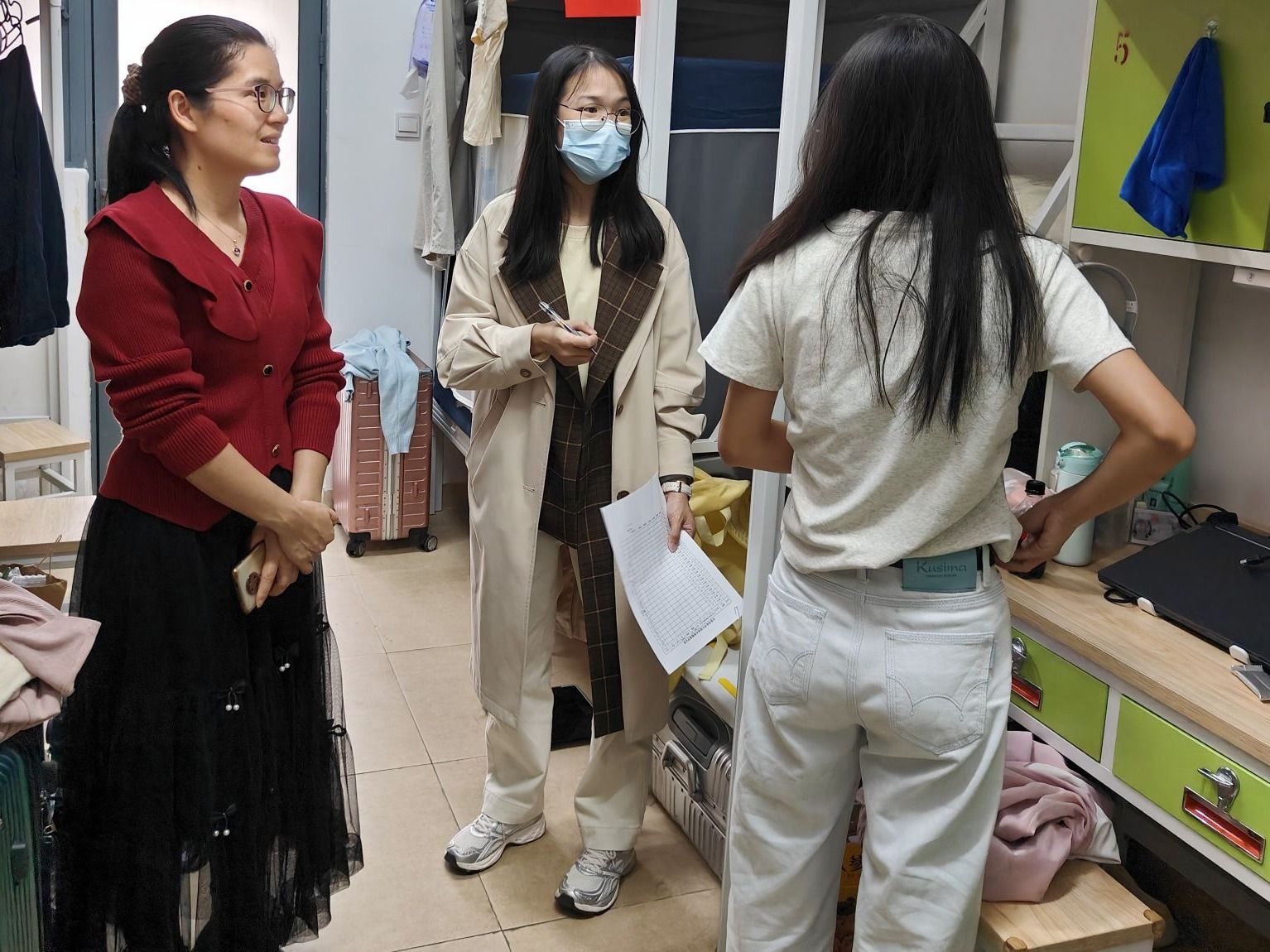 在检查过程中,学院领导班子、辅导员们深入每一间宿舍,不仅注重“找问题”,更致力于“促交流”与“做引导”,与同学们亲切交谈,详细了解学生近期学习和生活状况,耐心宣讲保持良好宿舍环境对于预防传染病、保障身心健康的重要意义。针对个别宿舍存在的杂物堆积、用电不规范等现象进行了现场安全教育,引导学生增强安全意识,自觉遵守校纪校规,共同维护安全、文明、和谐的居住环境。