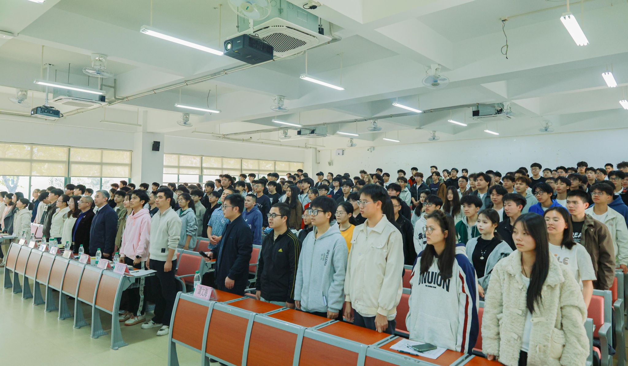 会议尾声,全体参会人员起立奏唱校歌,嘹亮的歌声展现了机电学子昂扬向上、爱校荣院的深厚情怀。