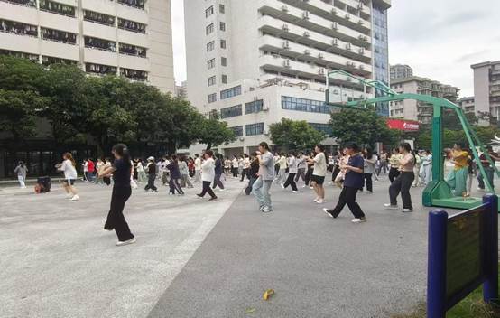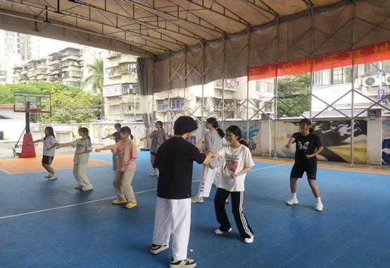 活动当天,海珠校区操场热闹非凡,洋溢着欢声笑语。在太极拳活动区,同学们伴随着悠扬舒缓的古典音乐整齐列队,缓缓起势。她们的动作如行云流水、刚柔并济,一招一式尽显太极的韵味与内涵。从“云手”的轻盈飘逸到“揽雀尾”的沉稳大气,同学们全神贯注,将太极的阴阳调和、以柔克刚展现得淋漓尽致。太极拳不仅是一种健身方式,更蕴含着深厚的文化底蕴。同学们在练习过程中,深刻感受到了中华传统文化的博大精深。