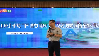 开幕式结束后,学院同期举办了2项活动,粤港澳职业指导社副社长禤伟强为现场200多名师生带来了《AI时代下的职业发展路径设计》的精彩讲座,粤港澳职业指导社举办了成员单位、学院教师代表等参加的交流会。