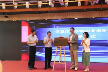 签约仪式后,罗纪旋、谢盛嘉、吴力以及郑桂霞共同为信息技术学院职业指导社揭牌。职业指导社的成立,为同学们提供更加专业的职业规划和就业指导服务,搭建了一个学业与职业发展结合,互学互促、交流和实践的职业指导平台,助力同学们职业发展。