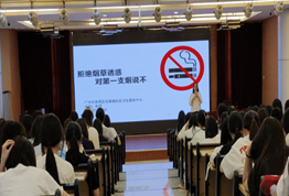 讲座中,朱明医生围绕“校园健康保卫战——结核病&艾滋病防治来助力”这个主题,从结核病和艾滋病的概述、对比、预防措施、检测与治疗等四个方面,向同学们讲解了结核病和艾滋病的传播途径、症状表现、防控措施等知识,并通过有奖问答小环节,引导学生提高自我保护意识,养成良好的卫生习惯。在“拒绝烟草诱惑,对第一支烟说不”主题讲座中,朱医生用直观的图片和视频展示了烟草对人体的危害,包括损害呼吸系统、增加患癌风险等。同时,针对青少年学生易受诱惑尝试吸烟的问题,分享了实用的拒绝技巧和应对方法。