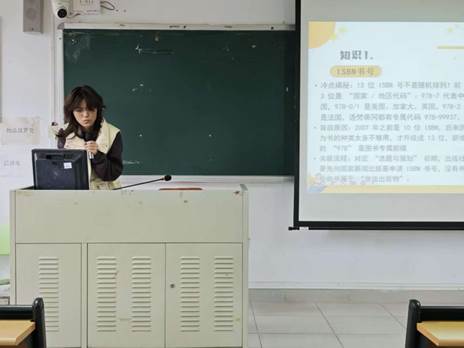 课堂伊始,主讲人陈晓倩、邓嫒萍两位同学以“一本书的6步诞生记”为切入点,系统讲解出版六大核心步骤,从“选题与策划”的市场调研、作者邀约,到“创作与投稿”的两种模式,再到“审稿与修改”的三审制,清晰拆解每个环节的关键要点。随后,围绕书籍“颜值打造”与“细节打磨”,介绍美术编辑、排版员、校对员的分工协作,并结合实例说明不同类型书籍的纸张选择技巧,同时明确整个流程耗时约3-6个月,其中审稿与印刷耗时最长。