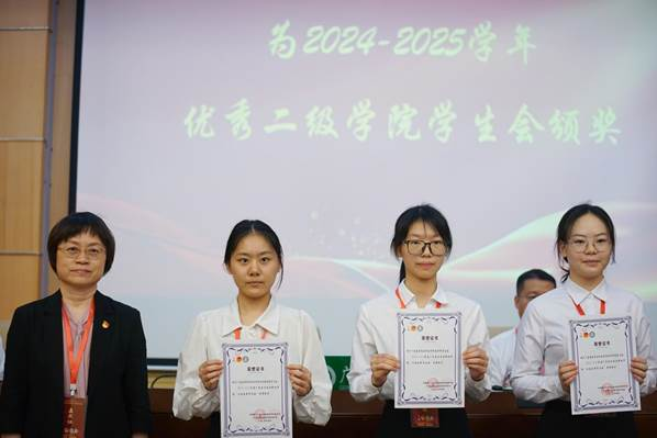 会上,张少兰校长为2024-2025学年优秀二级学院学生会代表颁奖,表彰他们在服务同学、助力“双高”建设中的突出贡献。