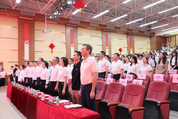 上午9点30分,伴随着庄严雄壮的国歌,毕业典礼正式开始。学校全体校领导、广东省湛江卫生学校、广东省食品药品职业技术学校、广东省培英职业技术学校等合作办学中职学校领导嘉宾,学校各相关职能处室负责人,各二级学院党政领导、毕业班辅导员以及2025届毕业生代表、毕业生家长代表等出席典礼,典礼由学校党委副书记周国平主持。
