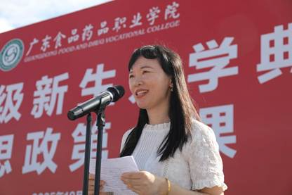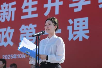 教学名师代表、食品学院副院长梁志理老师分享了学校升学、竞赛、创业、跨学科等多元成长路径,强调大学是 “加油站”,勉励新生要立目标、学本领,珍惜课堂与实践,学会 “为学”“为人”“做事”。