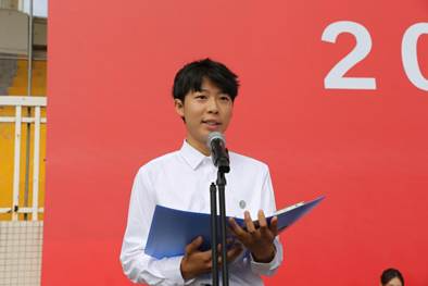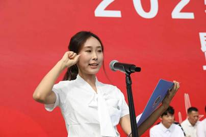 教学名师代表、马克思主义学院张梅花老师,从立鸿鹄志、持工匠心、怀赤子情三方面与新生共勉,期待同学们奔赴属于自己的山与海,为健康中国的事业贡献磅礴的青春力量。