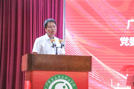 李凌代表学校向2025级全体本科新生的到来表示热烈的欢迎。他简要介绍了广东医科大学-广东食品药品职业学院协同育人模式的办学目标与成果,并寄语学子们一要铭记历史,在心怀家国中担当时代重任;二要脚踏实地,在迎难而上中锤炼过硬本领;三要笃行奋斗,在追求卓越中成就精彩人生。