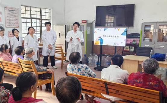 活动伊始,全体党员重温入党誓词,强化使命担当。义诊现场气氛热烈,管理学院师生通过生动有趣的形式为村民讲解药品安全知识。