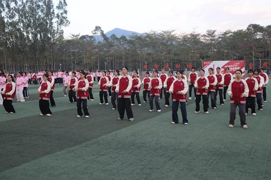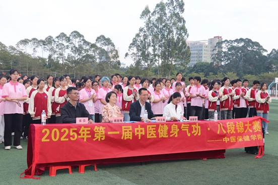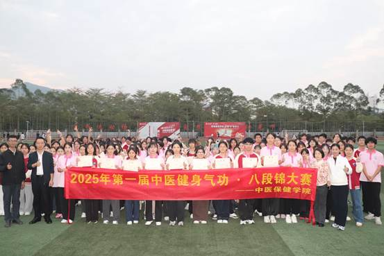 为大力传承中华优秀传统文化,积极倡导科学健康的生活方式,进一步丰富校园文化内涵,提升以文化育人的实效,2025年12月19日,中医保健学院在紫荆操场成功举办以“传承国粹,健体养心”为主题的首届校园八段锦比赛。中医保健学院刘卫海院长、姚丽梅副院长、杨雅琴老师、张浩老师出席活动并担任评委。中医保健学院在校的一百多名学生参与本项比赛,并共同见证这场传统养生智慧与当代青春活力交融的文化盛会。