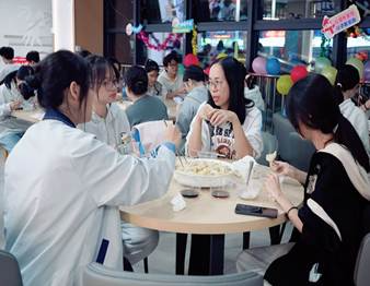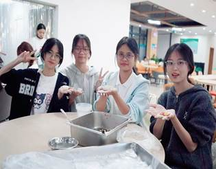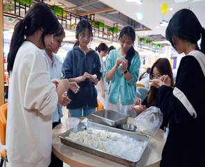 素手拈来,巧心慧思。师生们或娴熟或生疏的手法,都饱含着对美食的热爱与团聚的期盼。不多时,一枚枚形态各异、栩栩如生的饺子便跃然盘上,月牙、元宝、锦鲤,无不精巧。当热气腾腾的饺子与汤圆端上餐桌,品尝着亲手创造的佳肴,每个人脸上都洋溢着幸福的自豪感。