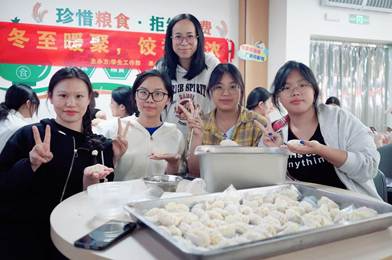 为弘扬中华优秀传统文化,增进师生情谊,营造温馨校园氛围,我校学生工作部于12月19日在雅园4楼举办了“冬至暖聚,饺香情浓” 为主题的迎冬至包饺子活动,将传统文化体验与人文关怀深度融合。学生工作部何丹丽副部长与学生代表齐聚一堂,共同迎接冬至佳节。