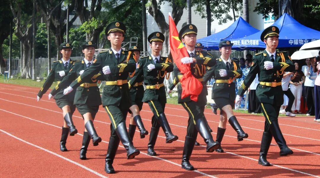 上午九时,六校区军训会操大会在庄严的国歌声中拉开帷幕。伴随着激昂的分列式进行曲,国旗护卫队首先入场,他们目光如炬,步伐铿锵。随后,各受阅方阵依次通过主席台接受检阅。同学们身着统一的迷彩服,口号震天,步伐坚定有力,行列整齐划一,充分展现了军训带来的蜕变与成长,赢得了现场观众的阵阵掌声。