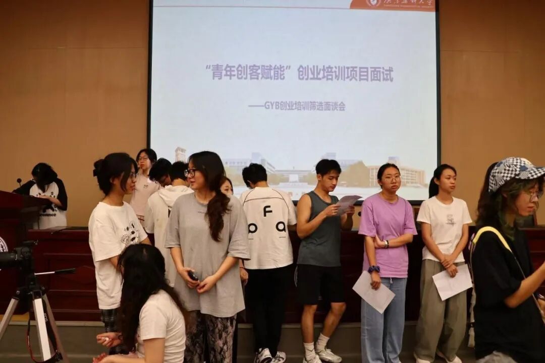活动的最后一个环节是“青年创客赋能”创业培训项目现场面试。同学们报名踊跃,纷纷就自己初步的创业想法与评审老师进行交流。经过严格筛选,最终择优录取了40名云浮校区学生,他们将作为该项目的首批重点培养对象,参加于10月底举办的系统化GYB培训。