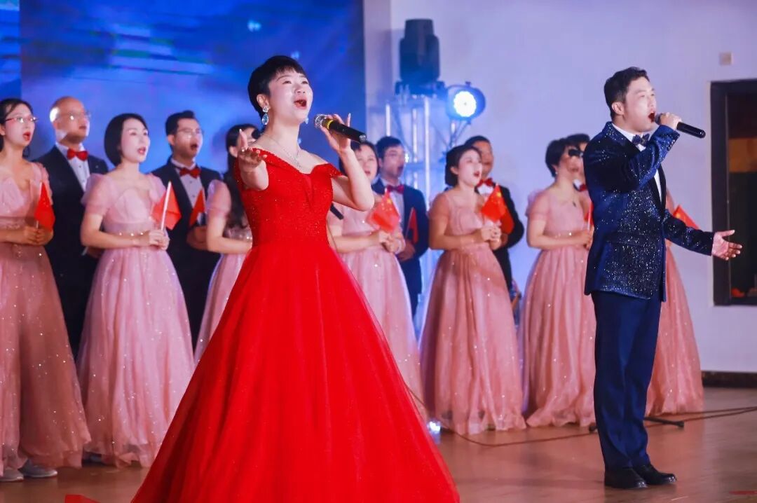 文艺汇演持续2个多小时,现场歌声嘹亮,舞姿翩翩,节奏欢快,气氛热烈。在谢幕环节,全体领导、嘉宾上台与演员代表齐声高唱《歌唱祖国》,将晚会推向最高潮。