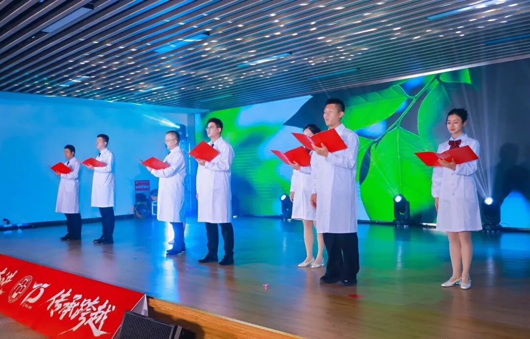 文艺汇演伊始,医院院歌《为生命护航》正式发布。医院党委负责同志讲述院歌的创作历程与深刻内涵。他介绍,建院75年以来,我们始终坚守“人民至上、生命至上”的初心,在救死扶伤的道路上勇毅前行,在教书育人的征程上润物无声。院歌的诞生,正是为了把这些宝贵的历史积淀、坚定的理想信念和温暖的人文情怀,化作可听、可唱、可传颂的文化记忆,让医院的每一位医教员工都能在歌声中找到归属感、认同感和自豪感。他希望,全体医教员工以院歌为纽带,将院歌精神内化为爱岗敬业、精益求精的强大精神动力,为建设特色鲜明的高水平药科大学助力,为建设健康广东、健康中国助力。