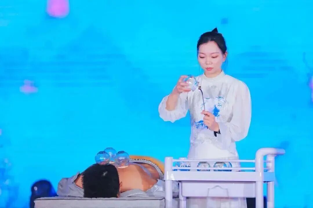 附属为民医院带来的情景表演《中医平衡火罐艺术表演》将传统中医技法搬上舞台,通过刚劲力道与太极柔缓的结合,展现了一场中医美学的视觉盛宴。