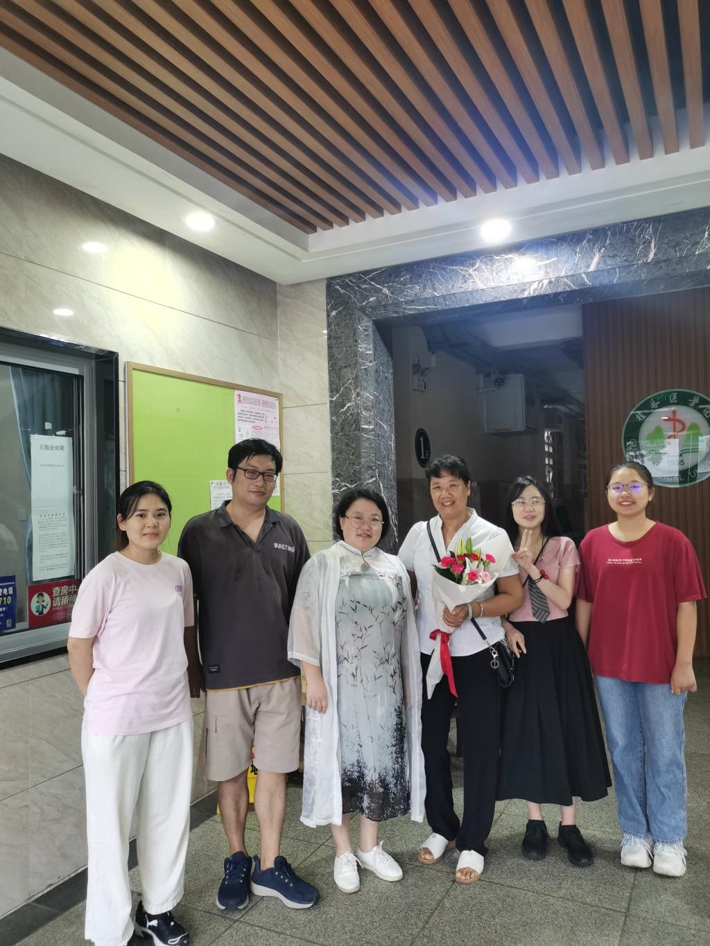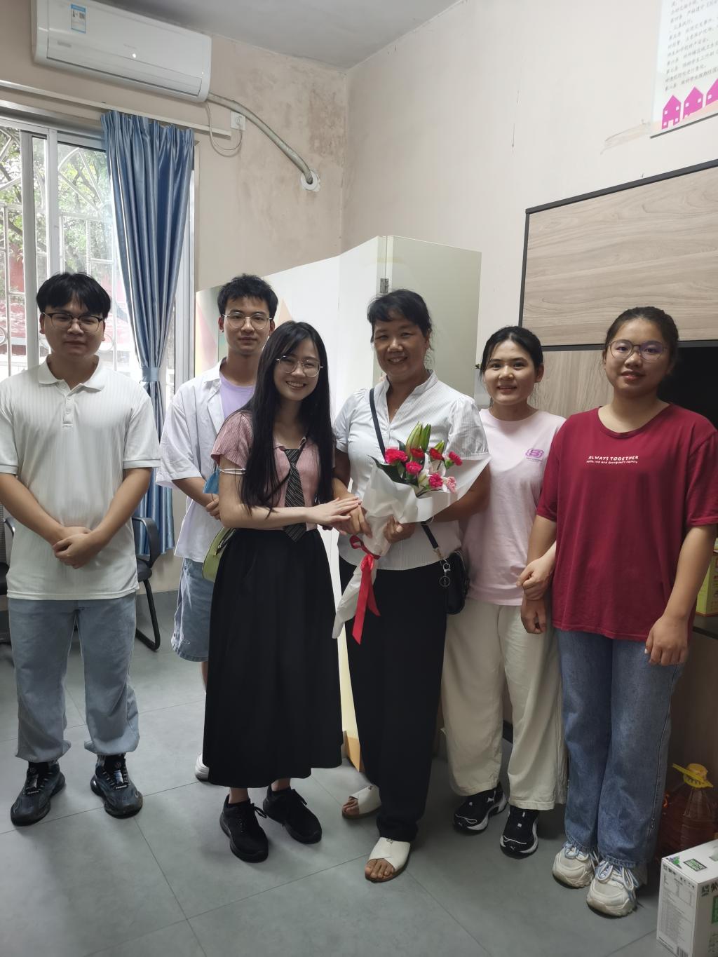 学生工作处的老师来为全荣英送行慰问,感谢她这么多年的奉献,并表示:退休后也是学校的一员,宿管员队伍建设、公寓文化建设活动还需要退休宿管员提出宝贵建议、共同参与。乐群校区的学生为全荣英奉上鲜花,感谢阿姨的关爱和辛苦。