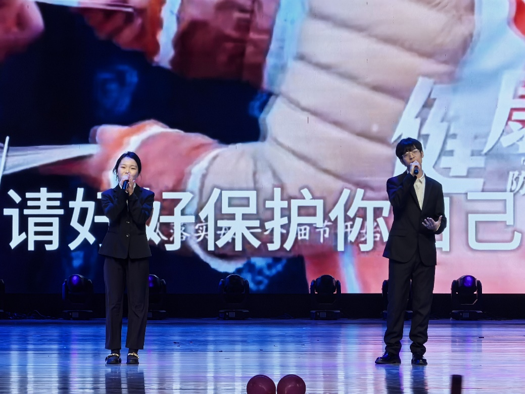 灵动的开场舞《定步桥》拉开了晚会的序幕,贝春华为本次晚会致辞,她强调了艾滋病防治的重要性,并对参与活动的师生表示了感谢。随后,石朝晖发表讲话,她总结了本次系列活动的成果,并鼓励学生们继续积极参与到艾滋病的预防和宣传工作中来,共同为构建无艾校园贡献力量。随后的演出环节中,歌曲《拥抱你》传递关怀;红丝带社团的《快板传情讲防艾》生动宣传;舞台剧《青春不恐艾》触动人心;演讲《知艾解艾,合力抗艾》呼吁全场。晚会的高潮部分,当属颁奖环节,晚会对防艾海报设计、微电影制作、科普视频制作、魅力讲师、高校防艾公益项目大赛、优秀指导老师及优秀组织七项内容依次颁奖,获奖者们脸上洋溢着自豪的笑容,他们用实际行动证明了青年一代在艾滋病防治工作中的潜力和责任。