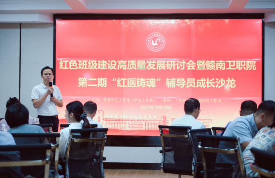 10月10日,赣南卫生健康职业学院成功举办红色班级建设高质量发展研讨会暨第二期“红医铸魂”辅导员成长沙龙活动。本次活动以“深化红色班级建设,提升铸魂育人实效”为主题,汇聚多方智慧,共同探索新时代红色文化育人新路径。