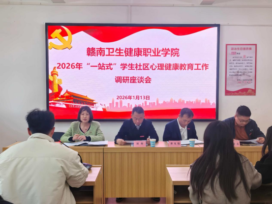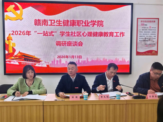 2026年1月13日下午,我校在药学楼201室召开“一站式”学生社区心理健康教育工作调研座谈会。会议由学工处处长彭梦溪主持,刘辉校长、曾凡伟副校长出席会议,学工处副处长靳靖、心理健康教育中心全体心理干事、各二级学院心理辅导员参加座谈。