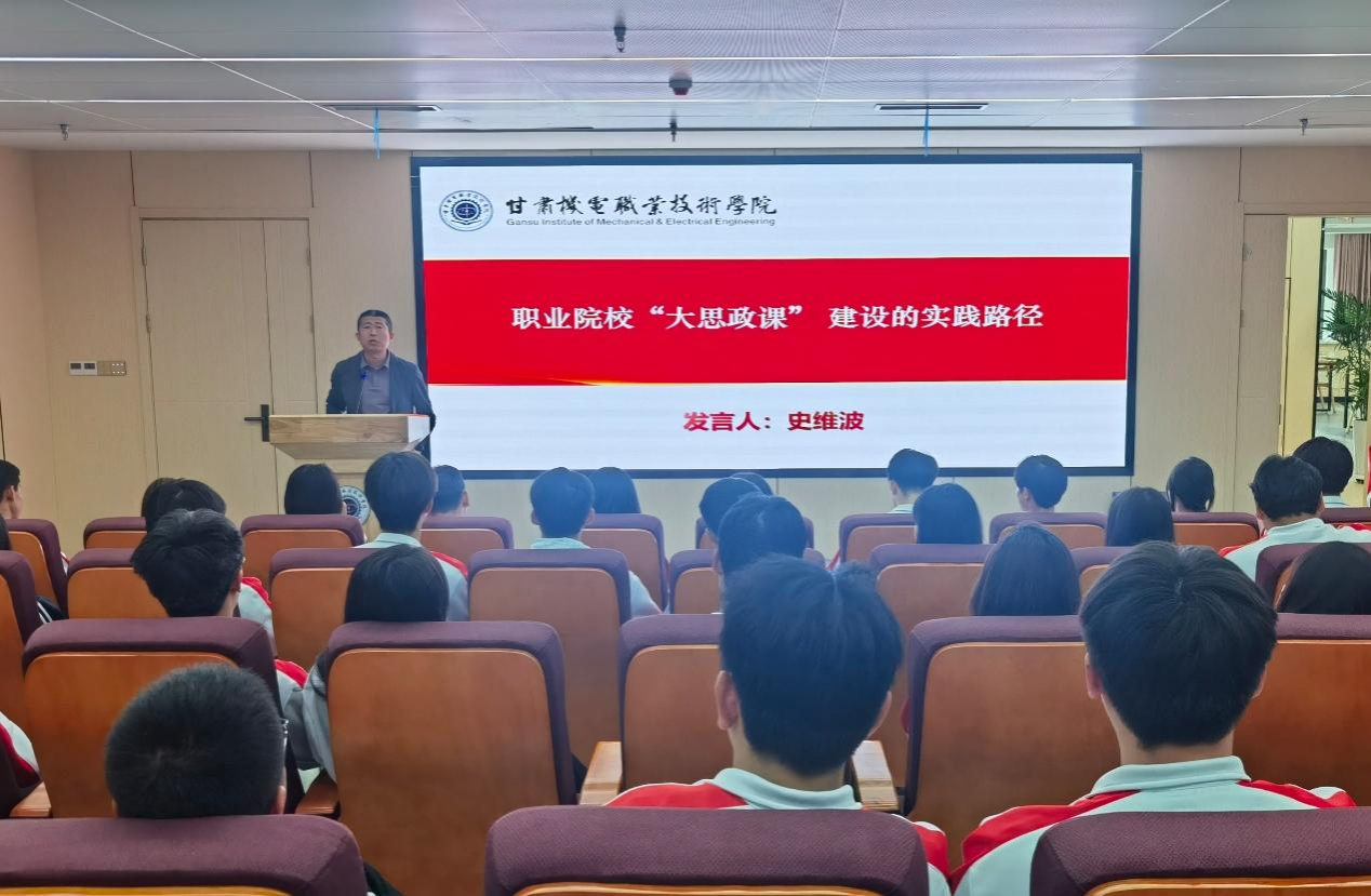 5月12日下午,甘肃省思政课名师工作室主持人、马克思主义学院院长史维波在明德楼多媒体影音室为学生代表作《职业院校“大思政课”建设的实践路径》主题报告。
