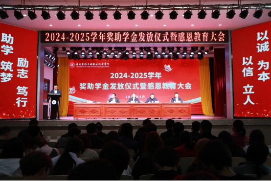 4月24日,学院召开2024-2025学年国家奖助学金发放仪式暨感恩教育大会。
