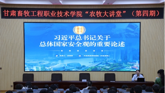 为深入学习宣传贯彻习近平新时代中国特色社会主义思想,教育引导广大师生树牢总体国家安全观,扎实推进习近平法治思想进校园、进课堂、进头脑。5月29日,学院特邀请中共武威市委党校“求是理论”宣讲小分队李海婷、邹婷老师来我院开展宣讲活动。学院党委委员、宣传统战部部长席爱学主持宣讲报告会。