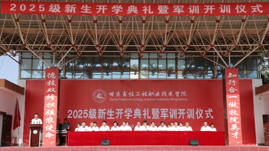 9月12日,甘肃畜牧工程职业技术学院隆重举行2025级新生开学典礼暨军训开训仪式。学院领导、凉州区人民武装部军训总教官梁龙同志、全体军训教官、各二级学院、各部门负责人和2025级全体新生参加。
