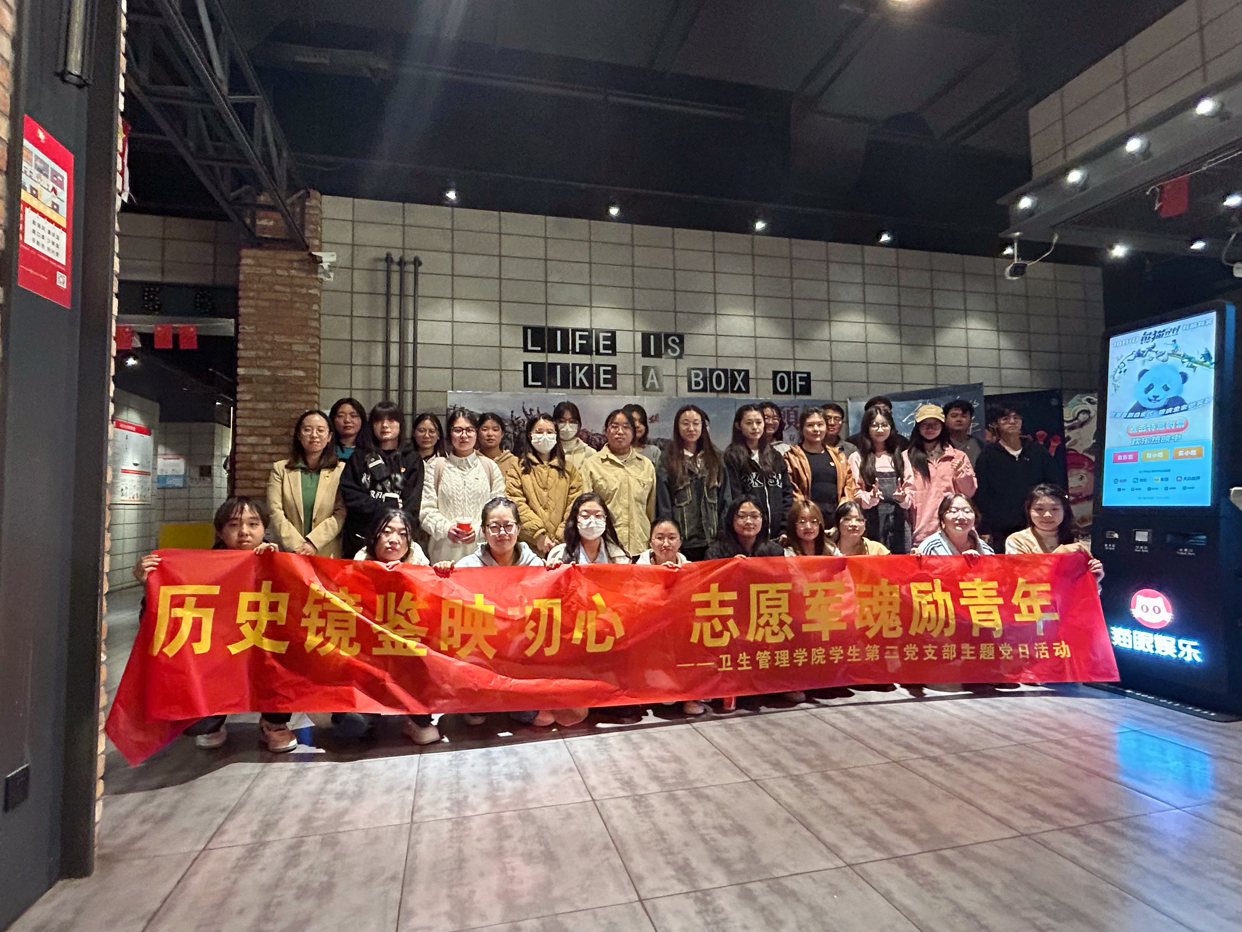 10月10日下午,卫生管理学院学生第二党支部携岐黄“一站式”学生社区思想引擎站成功举办了以“历史镜鉴映初心,志愿军魂励青年”为主题的党日活动。本次活动旨在通过观看爱国电影《志愿军:存亡之战》及开展爱国主义知识问答,让全体党员深刻了解抗美援朝战争中志愿军的英勇事迹,感受那段峥嵘岁月中的民族精神,进一步激发大家的爱国情怀和奋斗精神。