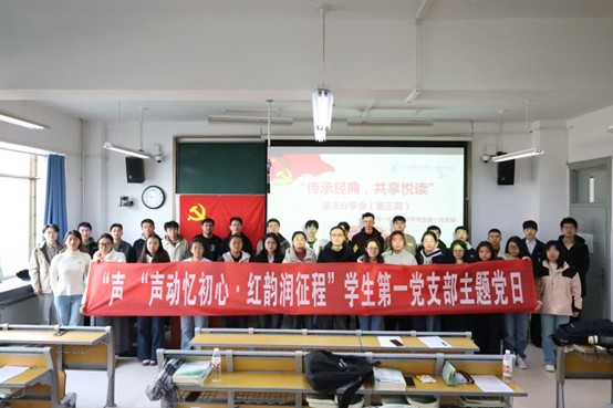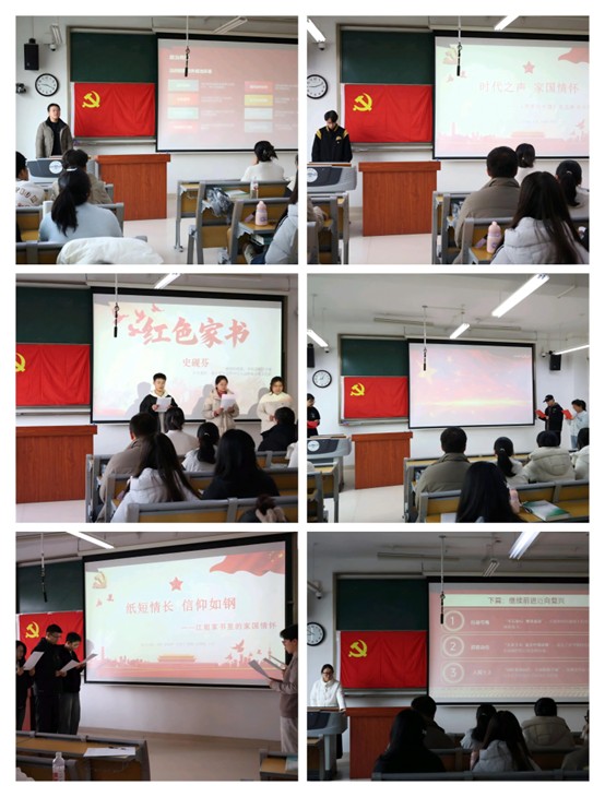 活动开始,支部书记范哲带领全体党员重温了入党誓词。本次主题党日活动以“五个一”特色环节串联起红色育人链条,让红色文化教育入脑入心。一段书香、一首赞歌、一句誓言、一封家书、一幕话剧——“五个一”串起红色育人链:红歌《不忘初心》激昂的旋律让“坚守初心、践行使命”的信念在传唱中愈发坚定。红色家书以“一纸家书映山河,满腔热血铸忠诚”为引,聚焦“家书里的家国情怀”,从泛黄信笺中品读革命先辈舍家为国的赤诚,在字里行间感受先辈对家国的深情担当,炽热的家国情怀深深触动了在场每一位同学;红色书籍以遵义会议为核心的交流分享,通过梳理历史脉络、剖析关键节点,让大家深刻理解革命道路的艰辛与伟大。在红色影音配音中,同学们精准把握角色情感,用富有感染力的声音重现了革命历史场景;红色话剧《觉醒》片段表演则以生动的肢体语言和真挚的情感表达,展现了青年一代在时代浪潮中的觉醒与担当,赢得了现场阵阵掌声。