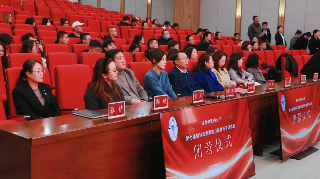 为深入学习贯彻党的二十大、二十届四中全会精神,推动《全面加强新时代高校辅导员队伍建设行动方案》落地见效,不断推进新时代辅导员队伍专业化职业化专家化发展,甘肃中医药大学第七届辅导员素质能力提升骨干训练营于11月6日-27日在和平校区举办。一站式辅导员工作室共有120名专兼职辅导员参与。最终,中西医结合学院陈世玉、杨秋萍荣获训练营一等奖,第一临床医学院李宁、护理学院李斌、卫生管理学院马志甲荣获训练营二等奖,人文与外国语学院赵亮等5人荣获三等奖,针灸推拿学院魏玉婷等6人荣获优秀奖;中西医结合学院、公共卫生学院获评“优秀组织奖”。