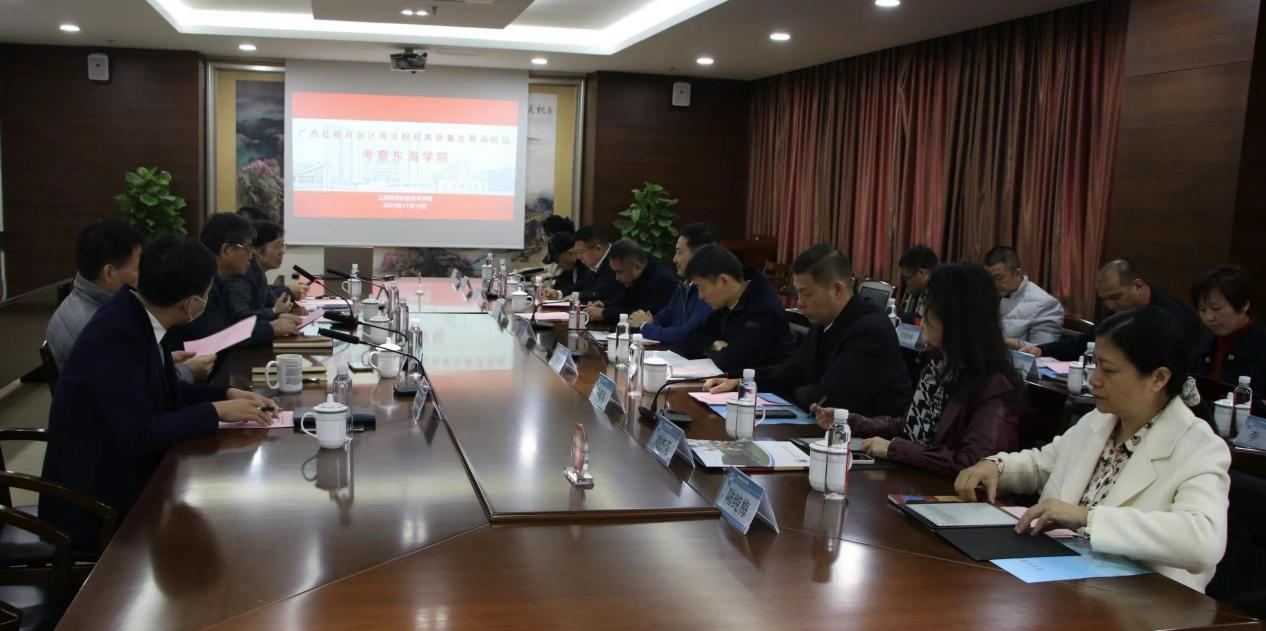 11月16日-17日,广西商务系统院校调研组一行15人赴上海开展推动高质量发展调研工作。本次调研以“学经验、赶先进、解难题、强创新”为主题,旨在贯彻落实党中央和自治区党委、政府关于大兴调查研究的有关工作部署,实地调研上海有关院校的先进经验和创新做法。调研组由广西壮族自治区商务厅二级巡视员杨勇带队,广西国际商务职业技术学院牵头,广西商业学校、广西商业技师学院、广西右江民族商业学校等院校主要领导、办公室、教务科研处、质量管理办公室相关人员参加。