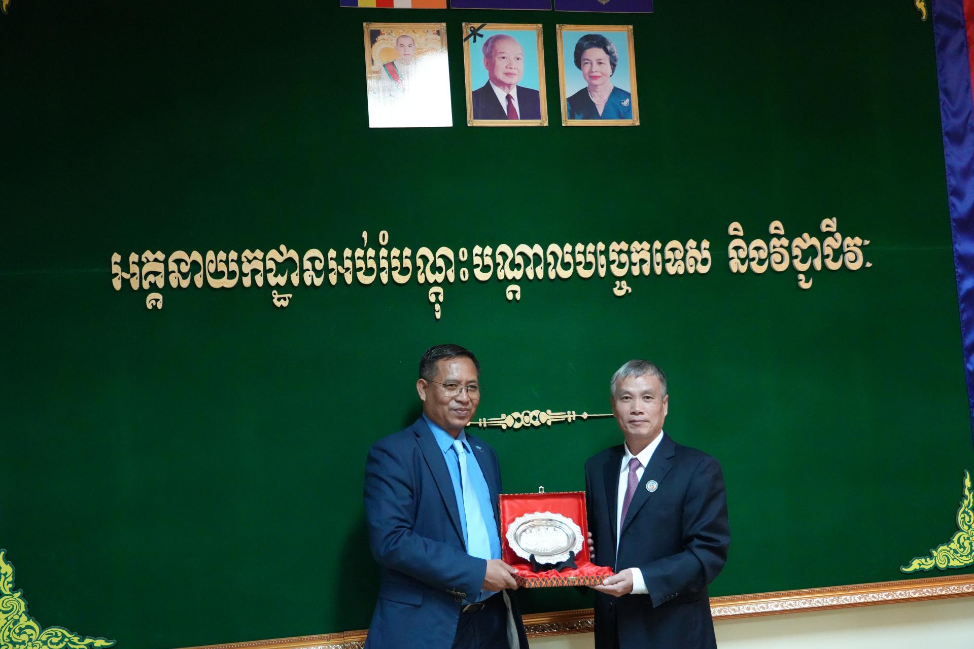 柬埔寨劳工与职业培训部职业教育与培训司司长钦德赛向班克庆赠送礼物