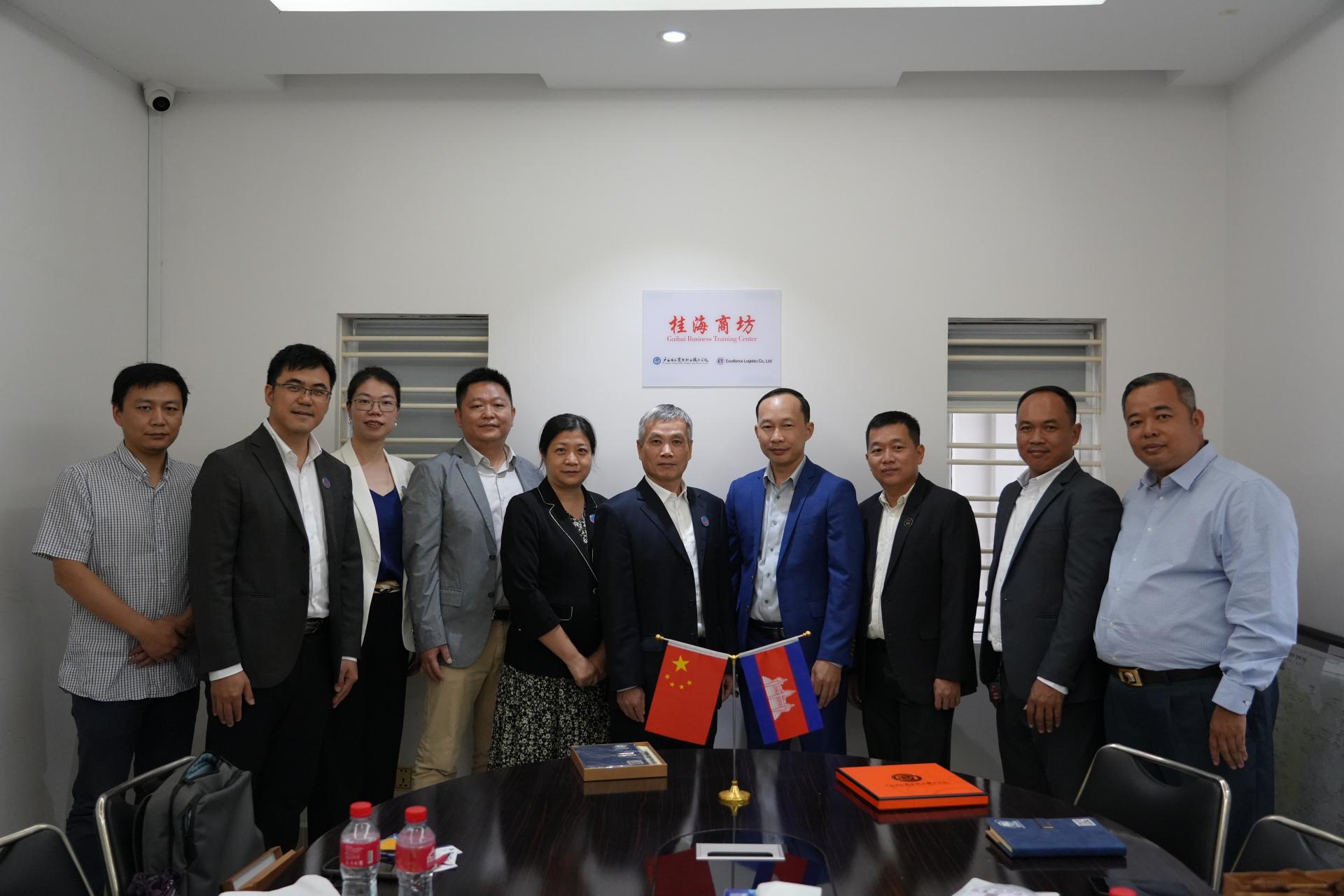 在柬埔寨期间,代表团先后访问了柬埔寨劳工与职业培训部职业教育与培训司、柬埔寨经济和财政部西哈努克省多功能经济特区规划秘书处、柬埔寨国家技术培训学院、柬埔寨西哈努克港工商学院与柬埔寨物流协会,并在柬埔寨兴盛国际物流有限公司挂牌“桂海商坊”。