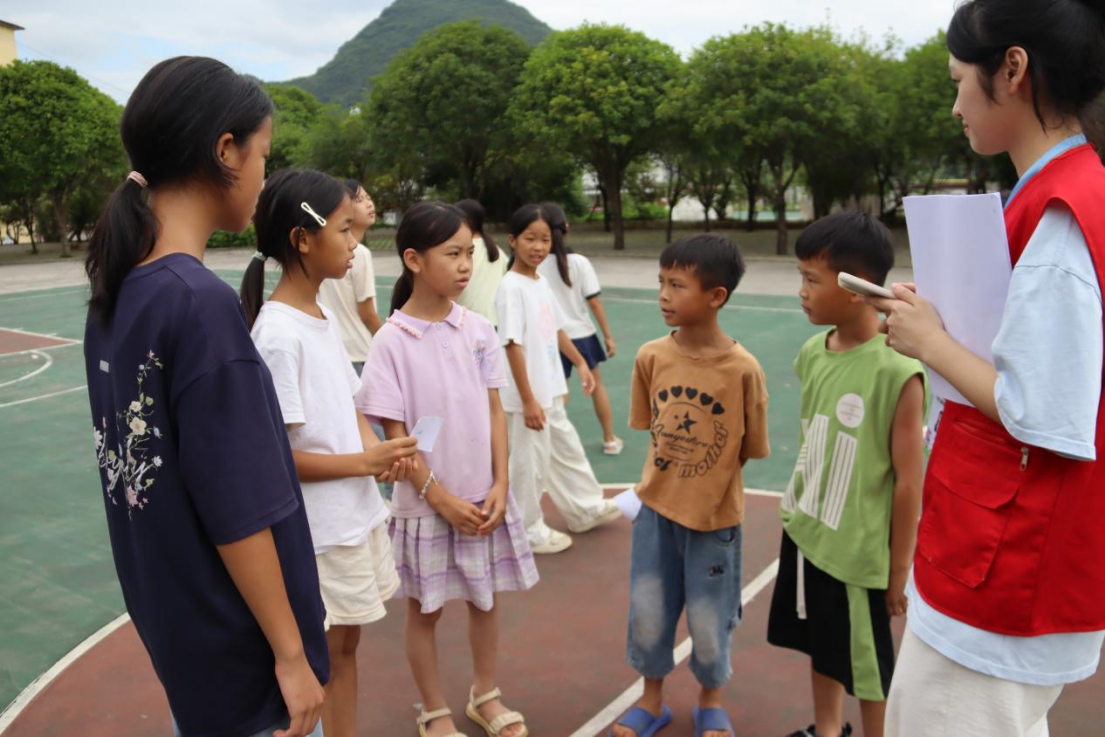 2023年,昭平县作为国家乡村振兴重点帮扶县教育人才“组团式”帮扶单位所在县,学校曾开展过志愿服务活动。时隔1年,活动再次走进昭平县黄姚镇篁竹村小学,以“守护童心,青春‘童’行”为主题,旨在提升儿童人际交往能力。本次活动聚焦乡村儿童心理特点,通过系统化的体验式素质拓展活动、趣味化人际交往心理健康知识科普和美育活动等形式开展。