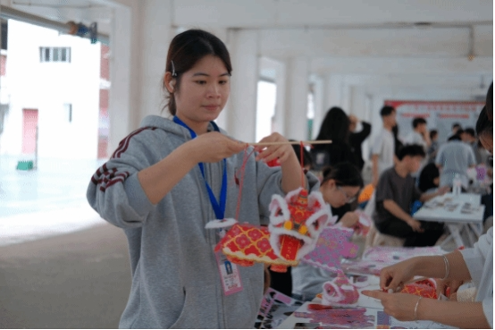 活动开展了非遗竹编制作、漆扇绘制、香囊制作、手绘团扇、折扇绘画、点茶活动、壮乡非遗绣球手作等活动。随着下课铃声响起,三个校区的活动现场逐渐热闹起来。武鸣校区“一站式”学生社区、A7、A11架空层,鹏飞校区3栋架空层,中尧校区风雨球场内人头攒动,由各学生社团精心布置的体验摊位错落有致,志愿者们热情洋溢。各活动得到了广大师生的积极响应与热情参与。在活动开展期间,各板块活动现场始终保持着较高的参与度,部分热门项目前排起了长队,同学们在动手实践中感受传统手工艺的魅力与趣味。