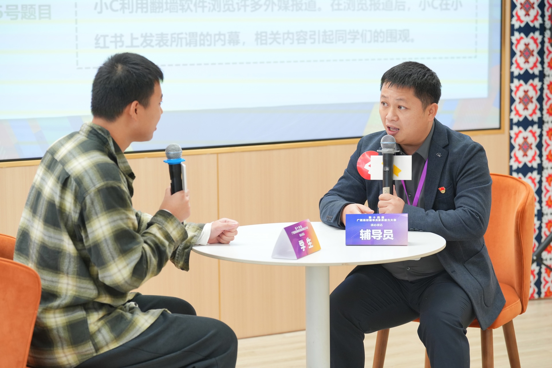 本次大赛作为广西高校辅导员队伍建设成果的重要展示平台,全区高校共择优推荐了113名优秀辅导员到本次大赛参与同台竞技。大赛为期三天,分“赋能成长”和“实战演练”两个单元,共设置赋能微课、基础知识测试、学情分析、案例研讨、谈心谈话五个环节。全方位、多角度考察参赛辅导员的政治理论水平、政策理解能力、学生工作专业素养及解决复杂育人问题的实践能力,既是对高校思想政治工作队伍建设成效的集中检验,更是推动辅导员专业化职业化发展的重要契机。