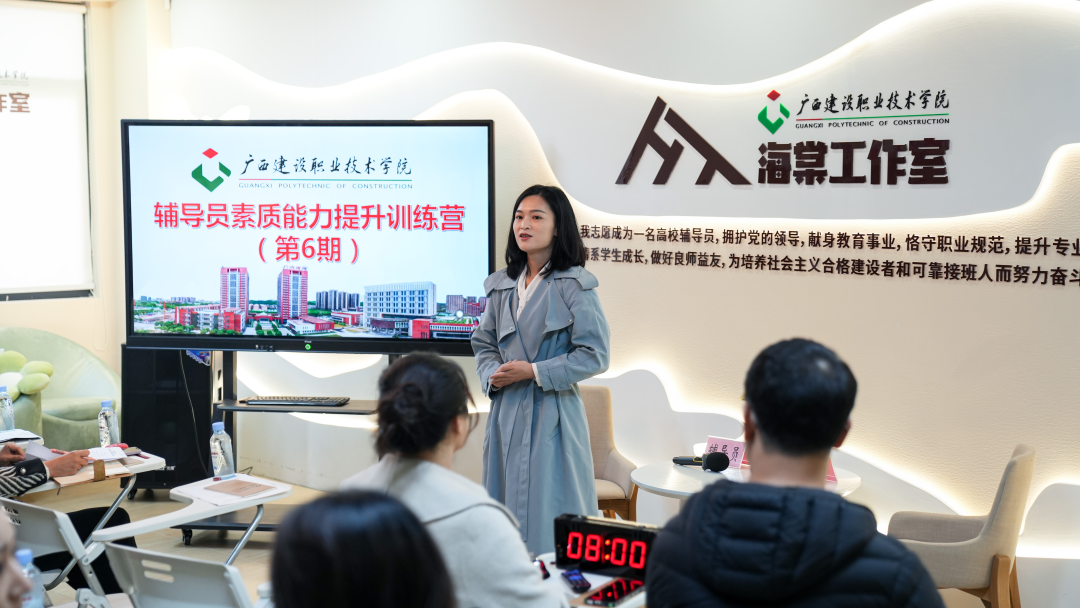我校土木工程学院团总支书记、海棠工作室骨干成员、第十届广西高校辅导员素质能力大赛一等奖获得者冯光帆老师从谈心谈话思路、技巧等方面对参训学员提出改进建议。