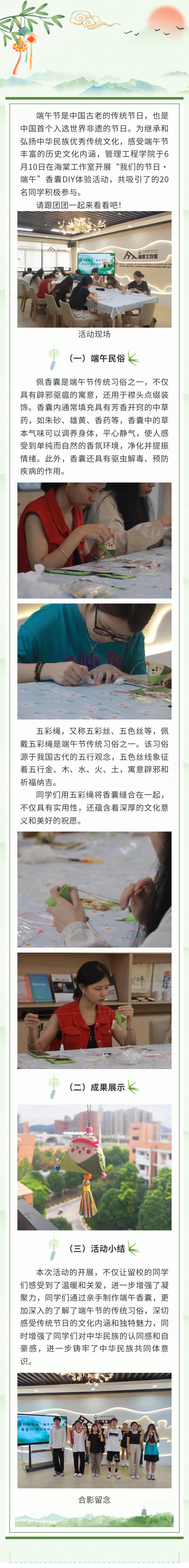 “我们的节日·端午”管理工程学院开展香囊DIY体验活动