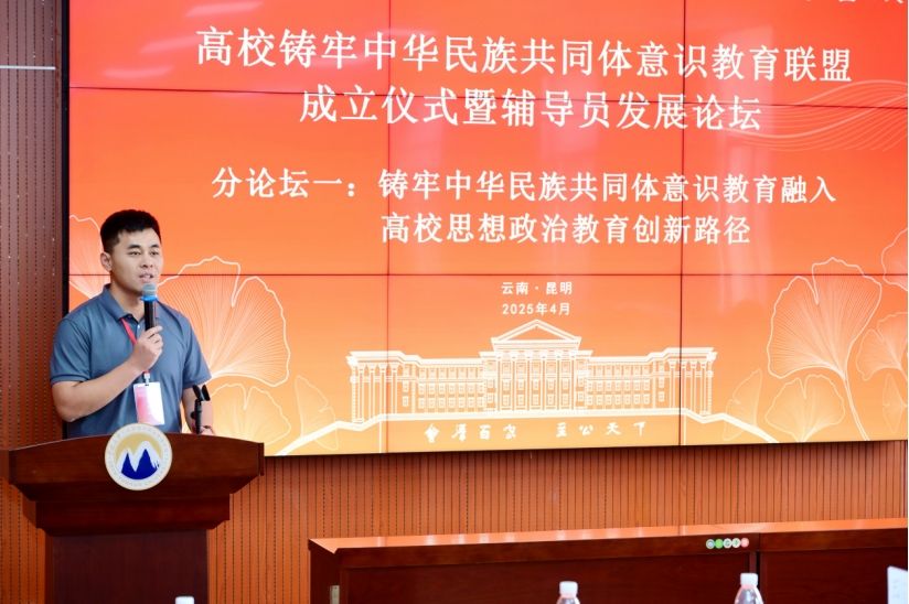 我校辅导员代表宋景弘受邀在分论坛作“铸牢中华民族共同体意识教育融入高校思想政治教育创新路径”主题发言。