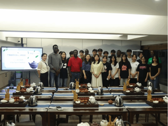 近日,我校茶艺文化传习基地内茶香氤氲、宾朋满座,一场以“茶和天下·中非共茗”为主题的茶文化交流活动在此拉开帷幕。人文学院英语教师唐晓耕,管理工程学院辅导员(中级茶艺师)韦珍安、颜彦婷携手冈比亚应用科学与技术大学访学团、我校学生代表,以茶为媒展开跨越国界的文化对话,共绘文明互鉴的温馨图景。