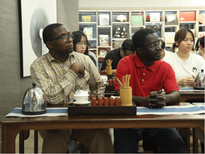 应邀而来的冈比亚访问学者塔帕·朱夫(Tapha Joof)登上茶席,向在场嘉宾展示西非特色阿塔亚茶道。他以当地特有的陶制茶壶现场煮泡由薄荷、木薯叶与绿茶调配的阿塔亚茶,并讲解在重要节庆中以茶待客的礼仪:“在冈比亚,主人会为客人连斟三杯茶,第一杯苦若生命,第二杯甜如爱情,第三杯淡似清风。”中非师生围坐共饮,在茶香中感受不同文明对生活哲学的诗意表达。