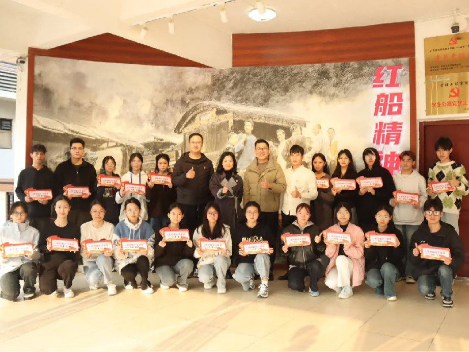 学院实施“红色品牌矩阵计划”,依托易班网等新媒体平台打造“成长会客厅”“梦想朗读者”等特色育人品牌,培育“青年匠心说”“红船精神讲述人”等多个精品项目,构建起“理论研学+实践锤炼+作品孵化”的育人机制。通过开设思想沙龙、主题研讨、红色诵读等386场次活动,结出育人硕果。学院现有“八桂先锋”精品课件2部、共青团“第二课堂”精品项目1项、易班金课1项,创排《向祖国报告》等红色文艺作品28部并在省市比赛中获奖。同步建设学生社区微型学习驿站,配备党建思政书籍200余册,打造“浸润式”红色育人场景,实现线上平台展播与线下场景联动的育人新路径。