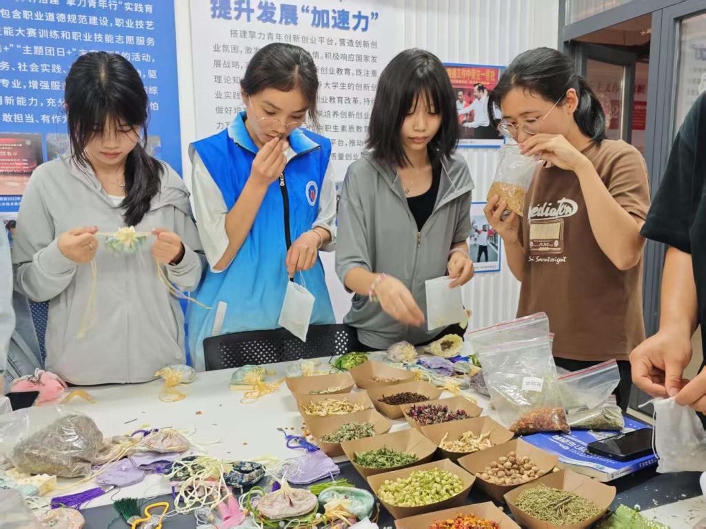 文化传承不仅在言语间,更在实践中。汽车工程学院、经济管理学院、人工智能学院组织学生开展了艾草门挂制作,学生们精心裁剪、捆扎、组装,现场创意迸发,不久,500余个艾草香囊便制作完成。