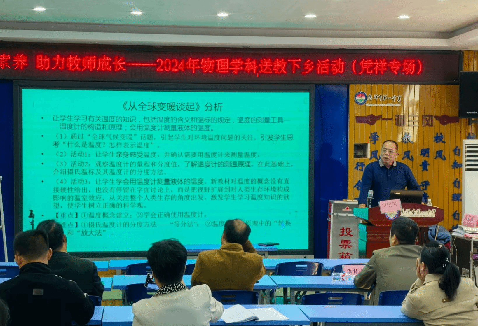 11月21至22日,物理与电子信息工程学院院长易其顺教授率团队一行10人到凭祥市开展“教育援边帮扶”物理学科送教下乡活动。本次送教下乡活动的主题是“立足核心素养 助力教师成长”,旨在通过同课异构的形式切实提升边境地区物理教师的教育教学实践能力和专业发展水平,培养高素质的边境民族地区中学物理教师队伍。