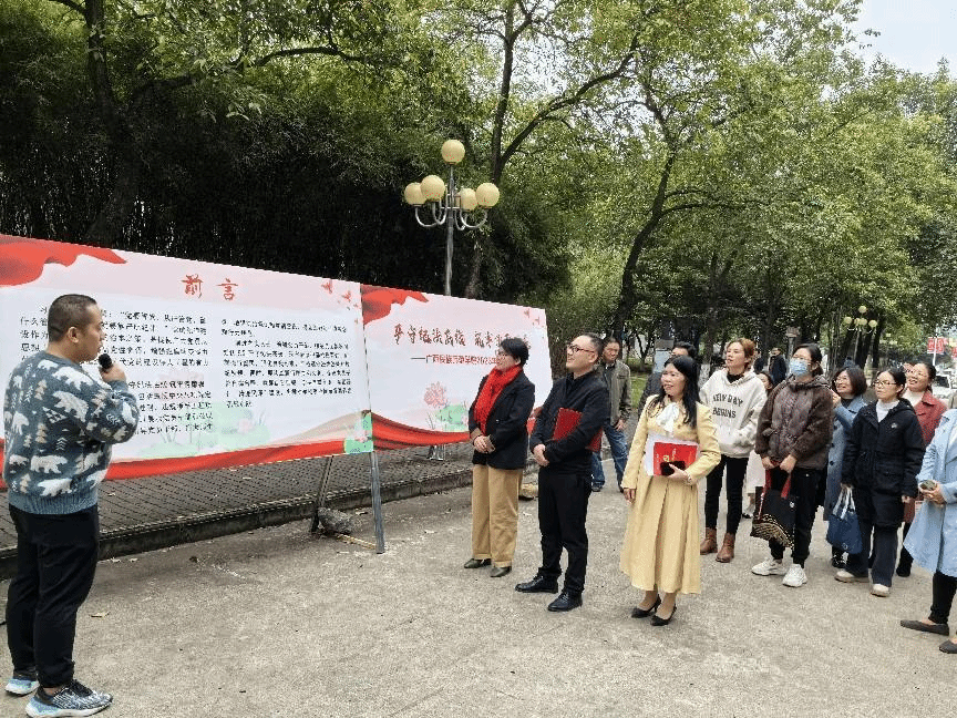 11月15日,历史文化与旅游学院组织全体教职工前往校园图书馆北面主干道参观学习2023年廉政教育月主题展。本次观展活动由学院纪检委员周捷飞主持讲解。