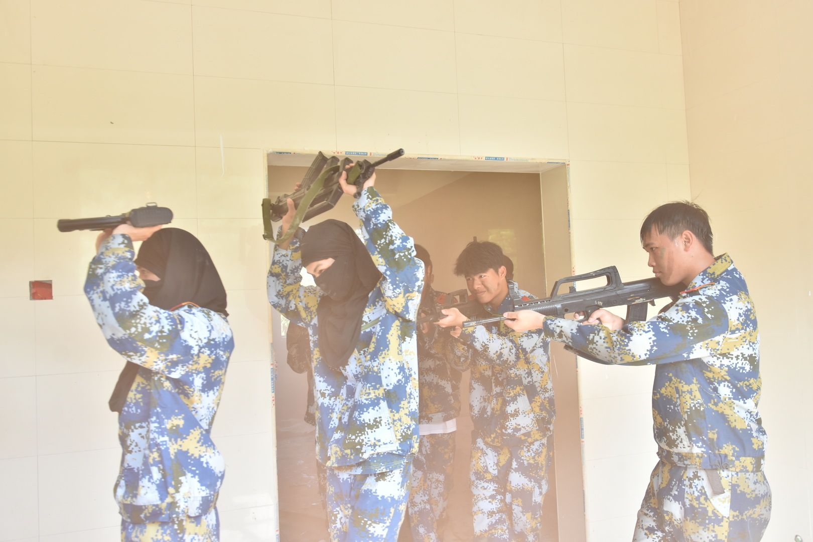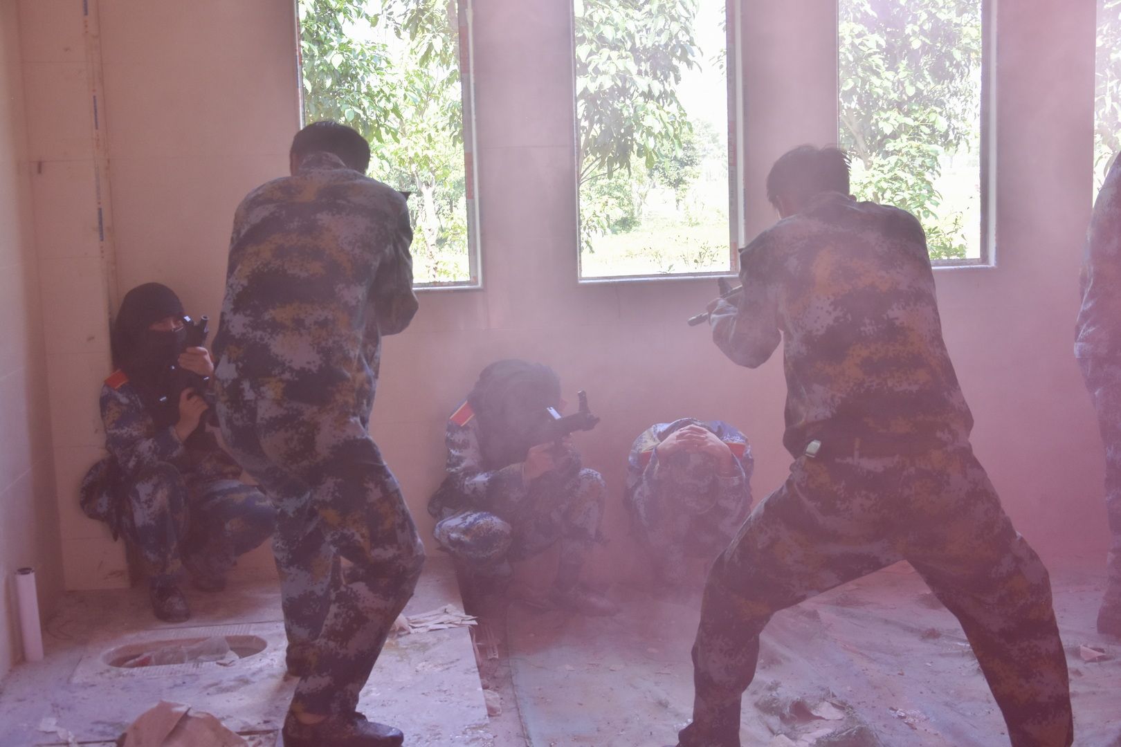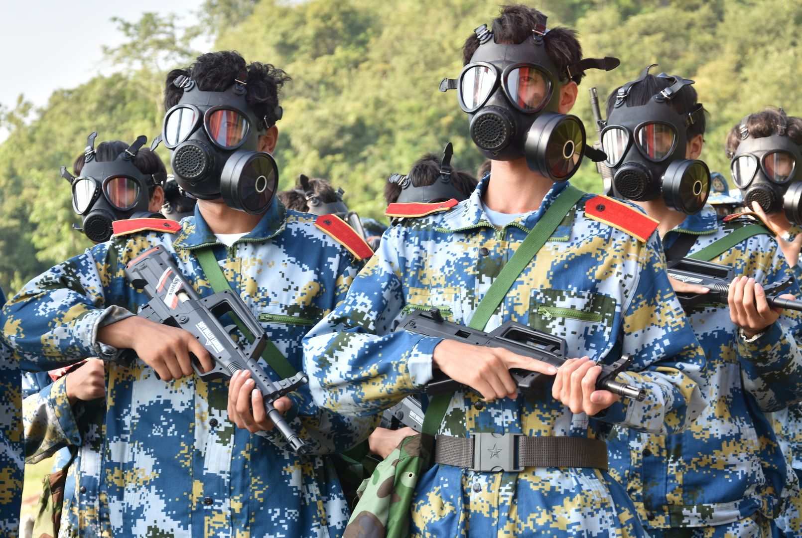 拉练中,先锋侦察连携带防毒面罩、模拟训练枪在拉练队伍中进行侦察任务,他们率先出发,为拉练活动保驾护航。各连参训队伍保持队形,有条不紊的紧随其后。军训队伍进入兰怀公园,各连安营休整后,由教官带领体育学院的同学组织开展防毒演练、水下作战演练活动,将训练中学到的军事技能运用到战术中来。