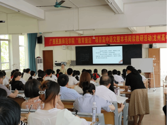 为增进教师对语文新课标和新教材中整本书阅读教学的理解,提升教师整本书阅读教学的实施与评价能力,奠定高中生的阅读基础,提高学生的阅读素养,6月10日至11日,文学与传媒学院依托“教育援边帮扶”项目、“语文教学协同改革虚拟教研室”项目和中学语文卓越教师培养项目,联合崇左市教育科学研究所到龙州县和凭祥市举办“携手成长 青春伴读”结对帮扶启动仪式暨整本书阅读教研活动。